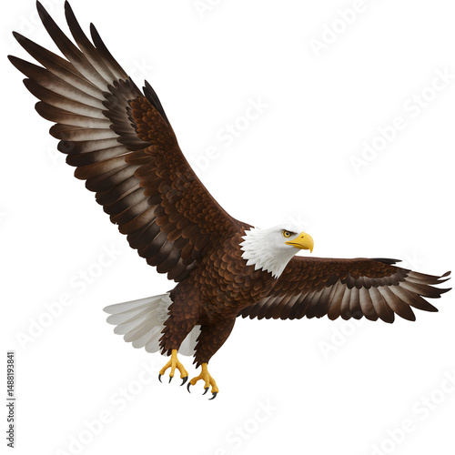 Obraz premium 力強く羽ばたくワシ 暗い背景に映える雄々しい姿