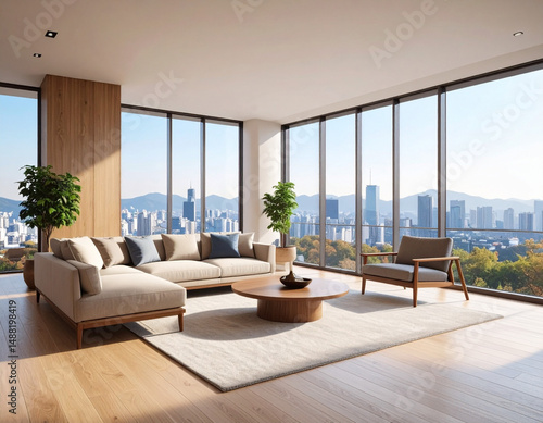 © Living Design, Fototapeta premium モダンなデザインの韓国ソウルに建つタワーマンション