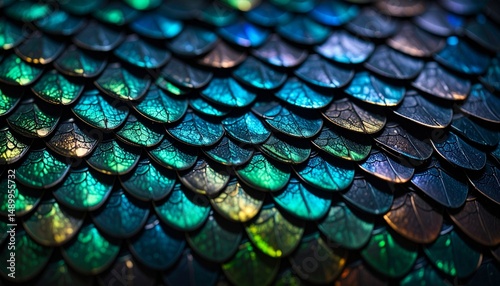 Obraz premium オーロラが走るドラゴンの鱗のテクスチャ