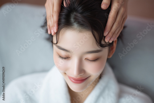 © yu_photo, Fototapeta premium ヘッドスパを楽しむ女性