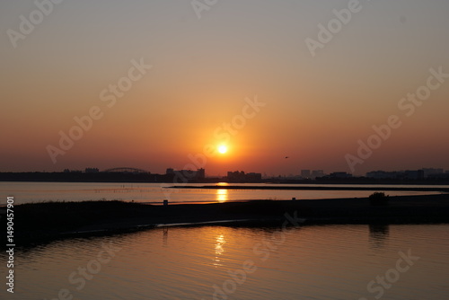 Fototapeta premium 静かな海に沈む夕日