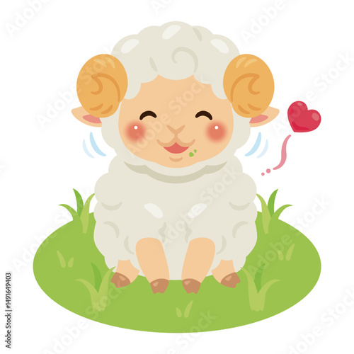 Obraz premium 放牧で牧草を食べるヒツジのイラスト