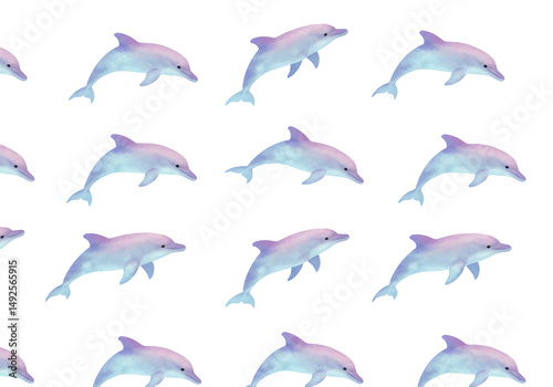 Naklejka premium 神秘的な淡い光、優雅に泳ぐイルカの群れ。幾何学模様、幻想的な水中世界。