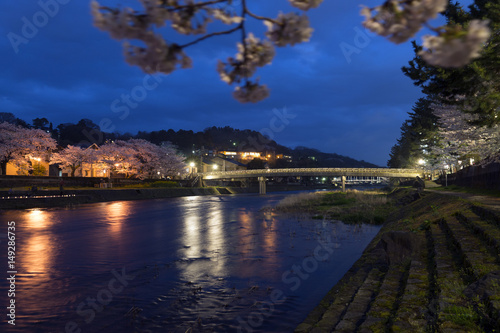 Fototapeta premium 金沢の夜景 梅ノ橋と桜