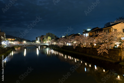 © Nature K Photostudio, Obraz premium 金沢の夜桜 主計町茶屋街