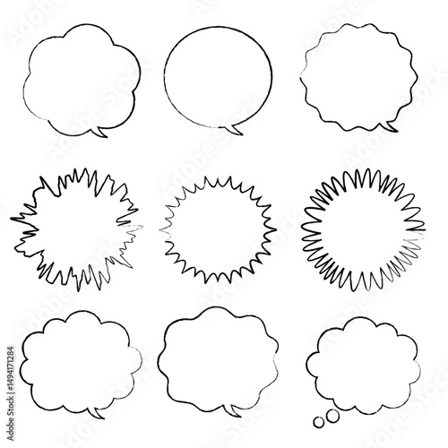 Fototapeta premium 手描き風の白抜き吹き出しセット・ラフな線がかわいいモノクロ素材