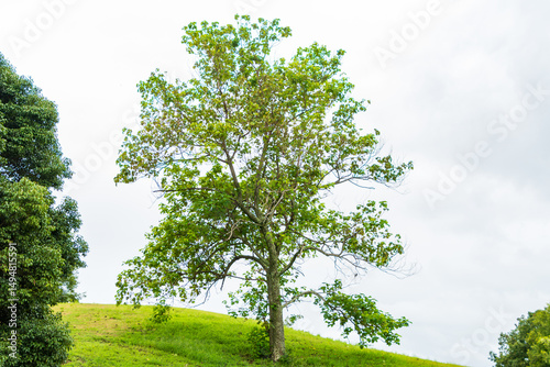 Fototapeta premium 緑の丘に佇む一本の木