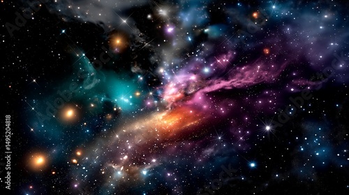Naklejka premium 宇宙の神秘を描いた幻想的な銀河と星雲のイラスト。サムネイルに最適な背景素材