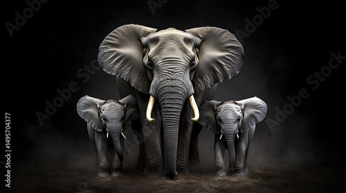 © Hoang, Fototapeta premium 闇の象一家