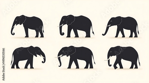 © Hoang, Naklejka premium ゾウシルエット 歩行 セット イラスト