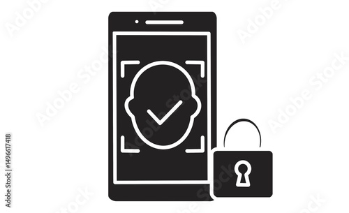 Obraz premium スマートフォンによる顔認証とセキュリティ保護を示すアイコンイラスト