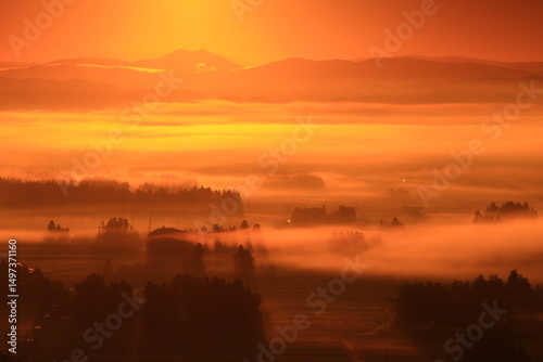 © yspbqh14, Obraz premium 岩手県花巻市 朝の田園風景