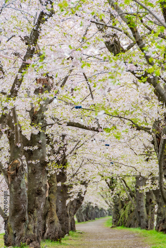 © smoke, Obraz premium 桧木内川堤、桜のトンネル。日本、秋田