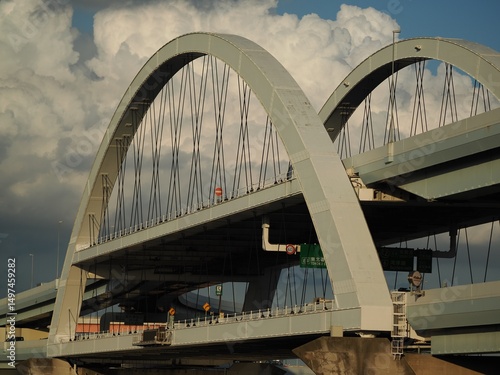 Fototapeta premium 夕暮れの首都高速のアーチ橋