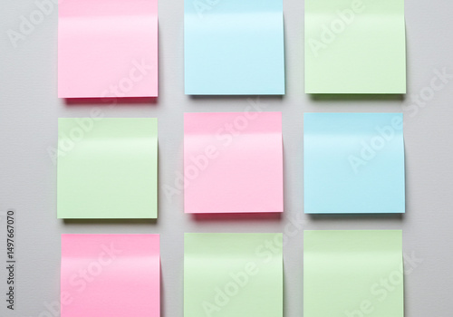 Fototapeta premium 綺麗に並べて貼られたパステルカラーの付箋