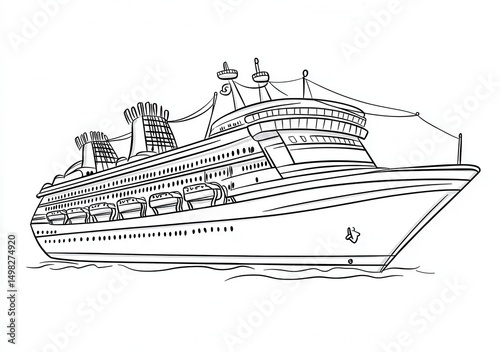 © 7sevenGr, Obraz premium 豪華客船の線画イラストレーション