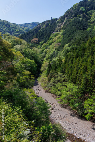 Obraz premium 新緑が美しい渓谷。 神奈川県清川村、早戸川林道-2025年