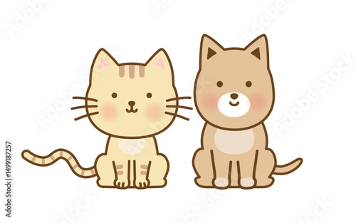 Obraz premium 仲良く並ぶ犬と猫のかわいいイラスト