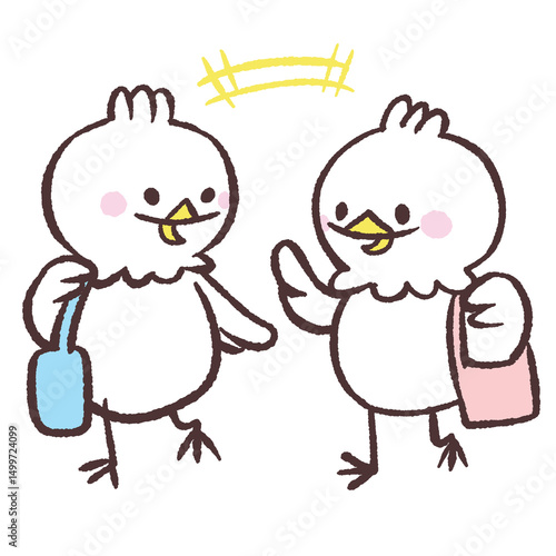 © おひさまストック, Obraz premium 会話しながら歩く白い鳥のイラスト