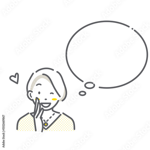 © fumi, Obraz premium 笑顔の女性と吹き出しのセット シンプルでお洒落な線画イラスト
