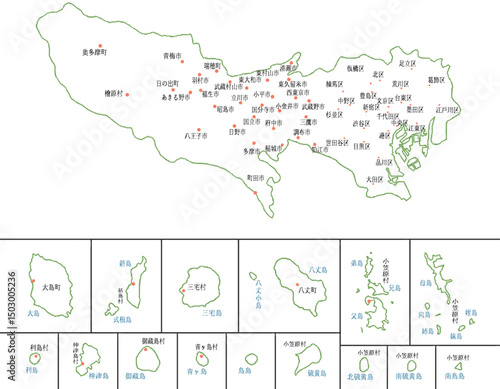 © 酢漬け きゅうりの, Obraz premium 東京都 地図 白 斑点 イラスト