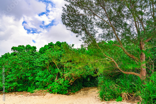 Obraz premium 石垣島の浜辺の奥に広がる緑豊かな道