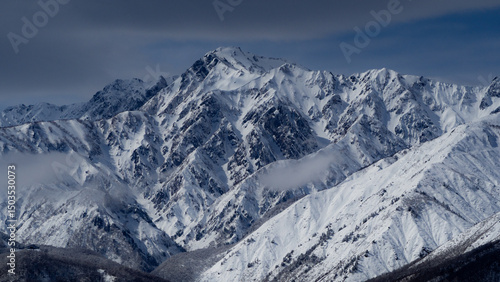 Obraz premium 曇り空 冬の北アルプス 長野県白馬村