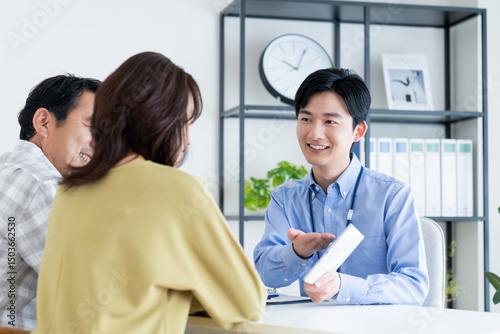 Fototapeta premium ミドルの夫婦に営業するビジネスマン