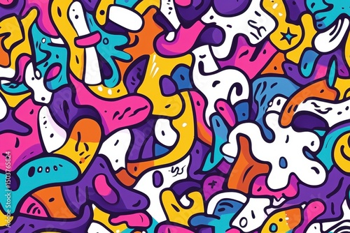 © Sheton, Fototapeta premium 추상적인 낙서 패턴, 다채로운 색상과 유기적인 형태의 조화