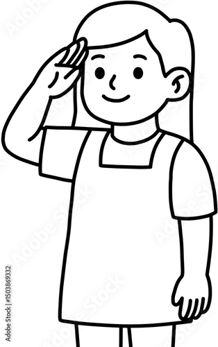 © nusoi, Obraz premium 현충일을 기념하는 경례하는 여자 어린이 일러스트