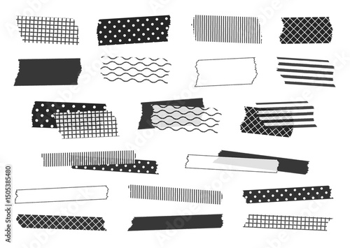 Obraz premium かわいい柄のマスキングテープイラストセット(ペン画・白黒)