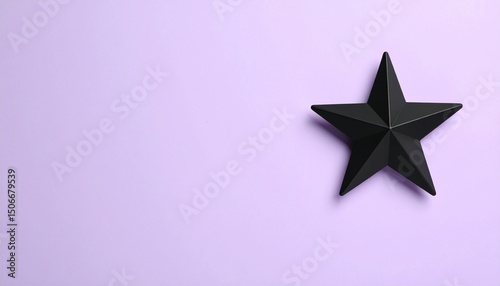 Obraz premium 控えめながらも存在感を放つマットブラックの星が左下隅に置かれた淡いラベンダー背景と対照をなして、繊細なミニマルアートを演出する