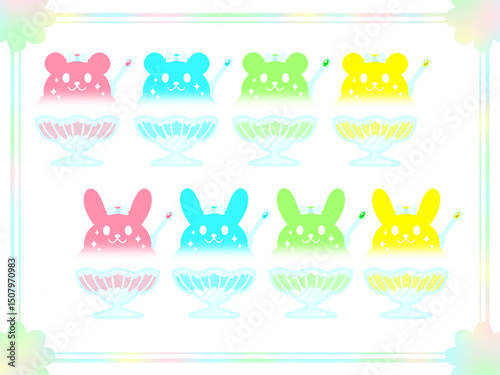 © Lucifa, Fototapeta premium かき氷ウサギ&クマ