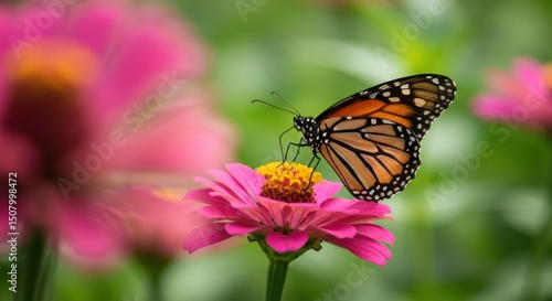 © AnilaStudio, Obraz premium ピンク色の花にとまる蝶のマクロ撮影