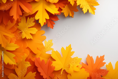 © hiro, Fototapeta premium 秋色の葉っぱのフレームとコピースペース