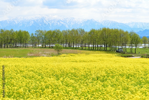 © UI_forever, Obraz premium 福島潟から菜の花越しに飯豊連峰を望む(新潟県)