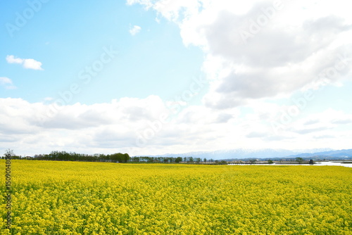 © UI_forever, Obraz premium 福島潟から菜の花越しに飯豊連峰を望む(新潟県)