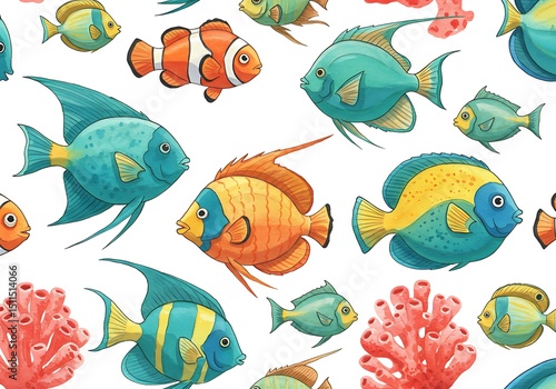 © Yamamoto , Fototapeta premium 水彩タッチの海の仲間たち