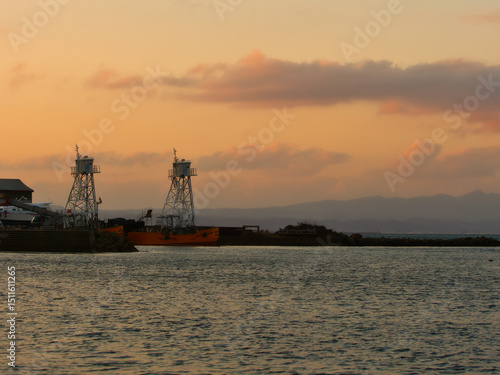 © Gon Hayasaka, Fototapeta premium 夕焼けの港湾の風景