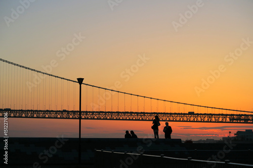 © photo 34, Obraz premium 明石海峡大橋 夕日とシルエット