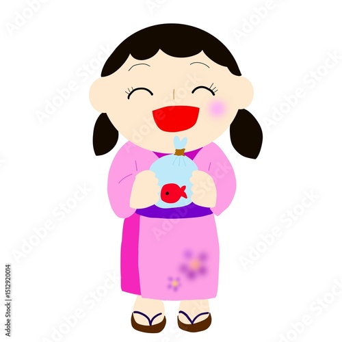 © Yuki-ゆき, Fototapeta premium 金魚をすくえて大喜びする子ども