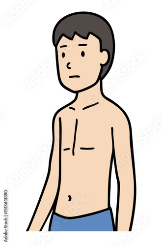 Fototapeta premium 胸板の薄い扁平胸の男性、人体の体型