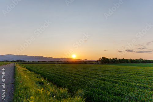 © makieni, Obraz premium 夕焼けと十勝の畑