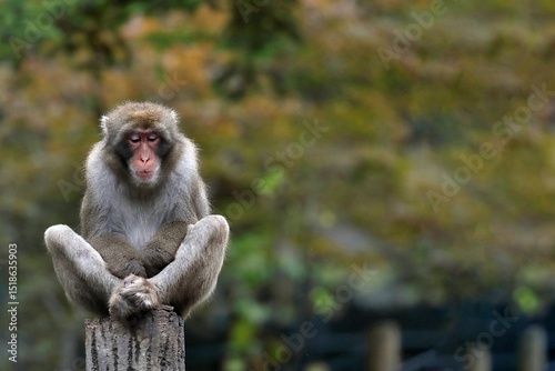 © osaru_photos, Obraz premium 柱の上で足を組むニホンザル