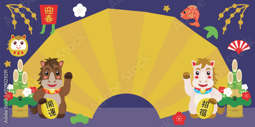 © Third Stone, Obraz premium 午年のかわいい馬の背景バナー