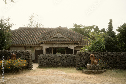 Obraz premium 石垣で囲まれた石垣島の伝統的な家屋