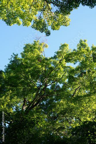 © ykimura65, Obraz premium 京都常寂光寺の緑の木々と苔に覆われた境内風景