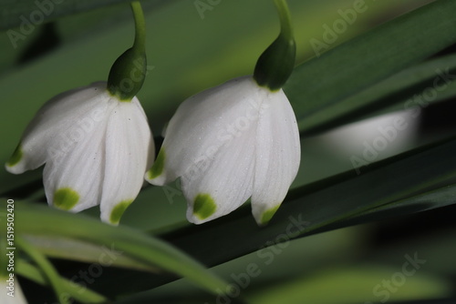© 俊朗 浅川, Obraz premium 春の庭に咲く白いベル型の花びらの先端に緑色の斑点があるスノーフレークの花