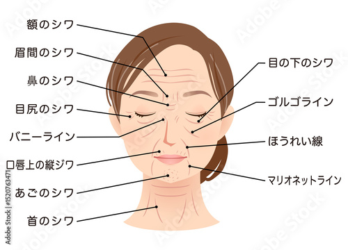 Fototapeta premium シワの種類 女性の顔 美容 シニア女性