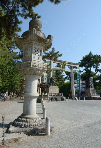 Fototapeta premium 北野天満宮 境内入口の石灯篭と大鳥居 京都市上京区